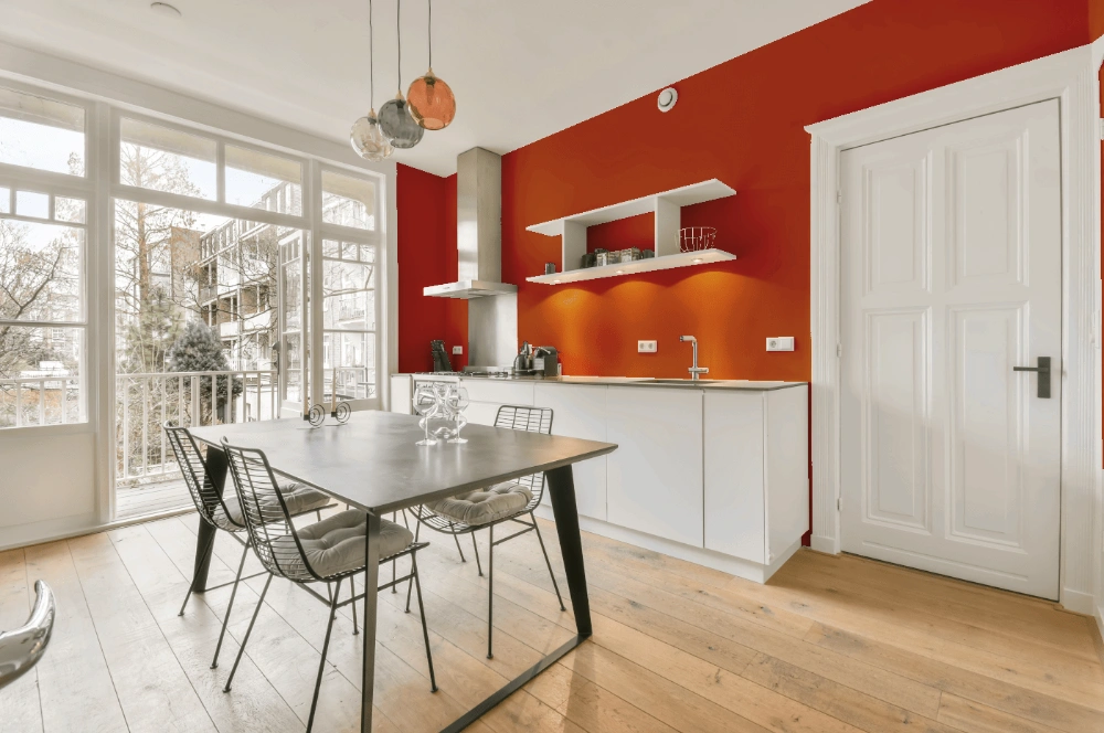 - Warm red shades add a vibrant and passionate touch to a room, creating a dynamic and energetic atmosphere, perfect for dining rooms, living rooms, and accent walls.