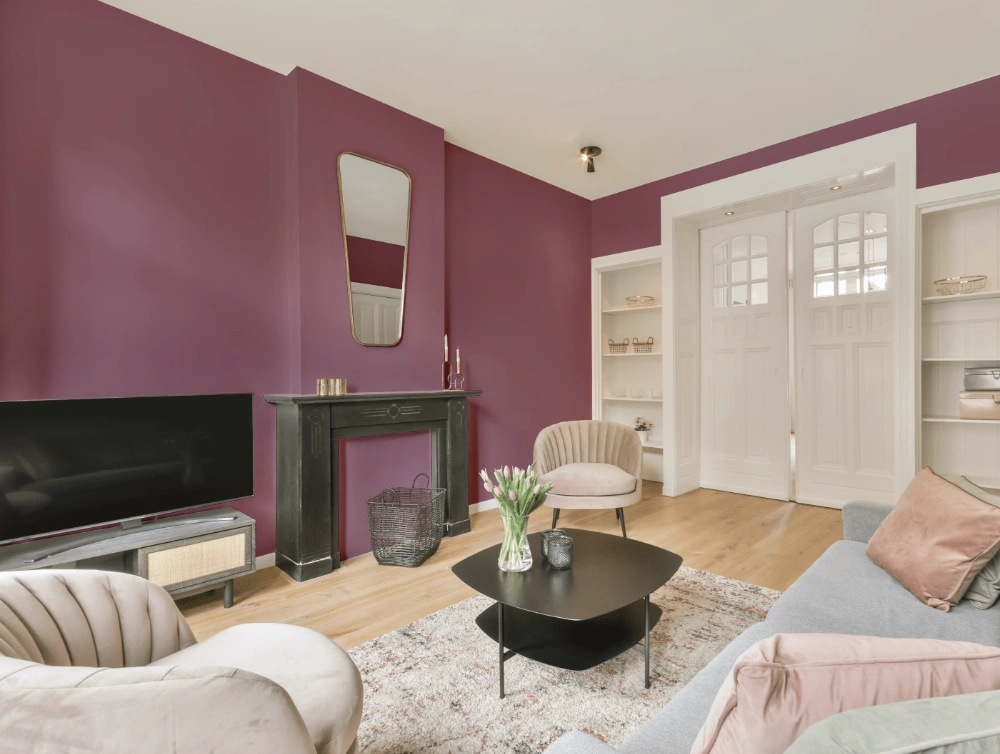 - Warm purple shades add a rich and luxurious feel to a room, creating a sense of depth and warmth, ideal for bedrooms, living rooms, and dining areas.