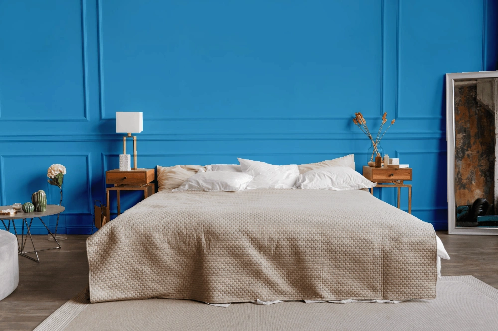- Cool blue shades make a room feel sleek, fresh, and modern, perfect for bedrooms, bathrooms, and home offices where a sense of calm and sophistication is desired.