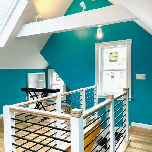 View the photos of real spaces painted with this blue that were not included in specific categories.Close-ups, painted furniture, storages and dressers, hallways, stairs and ceilings.