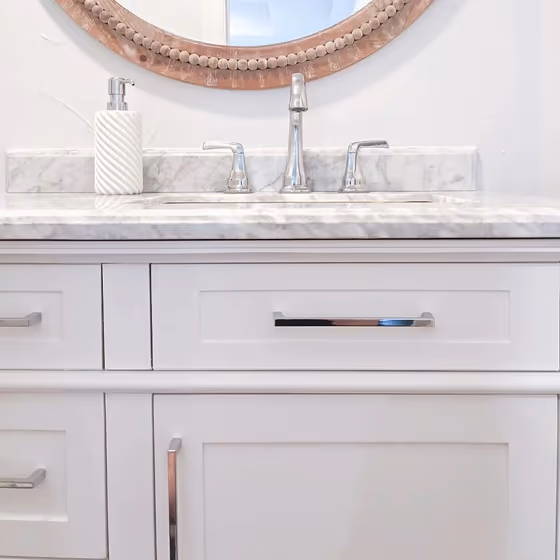 Want a stylish kitchen? View real-life photo examples of this fascinating cool hue is paired with backsplashes, countertops, and hardware.