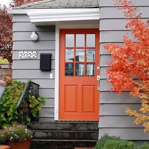 Looking for a fresh new look for your house exterior or starting from skretch? We’ve collected pictures of real-life homes that have been painted with this warm hue. Find inspiration for your house’s exterior, front doors, gates, shutters, frames or windows.