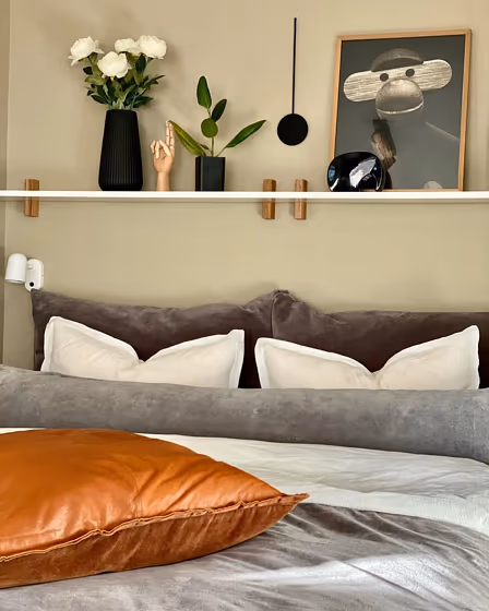 We’ve hand-picked a beautiful collection of photos of this amazing Beige shade used in real bedrooms. Take a look and imagine how this wonderful warm Mid-tone paint color could transform your own bedroom space.