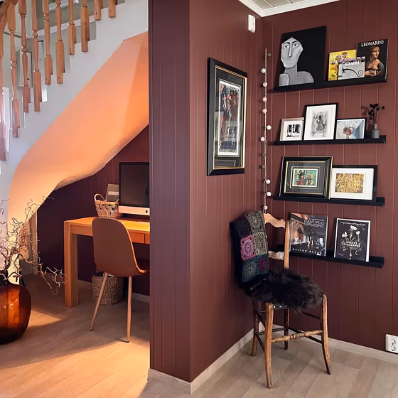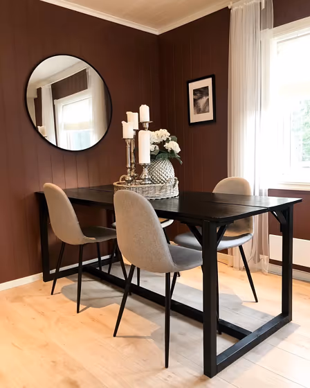 - Using dark warm shades like rich reds and browns creates a cozy and intimate atmosphere, perfect for dining rooms, libraries, and living rooms. These colors add depth and warmth. However, be careful when using them in small spaces or rooms with low ceilings, as they can make the space feel even smaller.