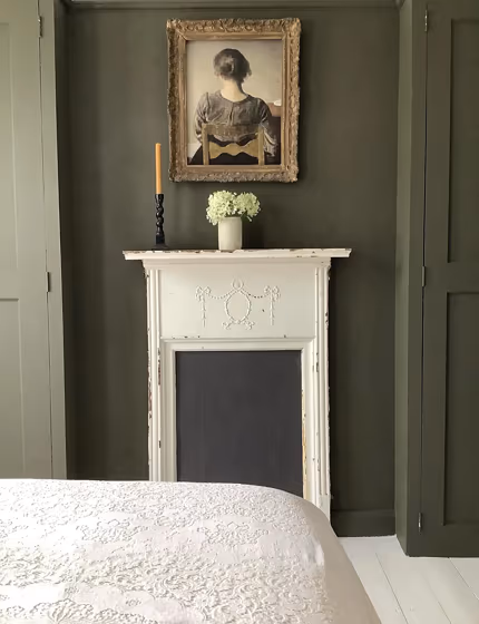 This color scheme is a combination of two shades that are opposite each other on the color wheel. The high contrast between these colors creates a vibrant and dynamic visual effect. For the color Reduced Green with a orange hue, complementary colors are those with a blue hue close to 227, such as Farrow and Ball Wine Dark and Stiffkey Blue.