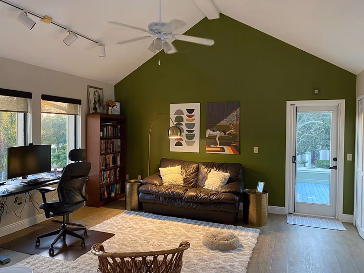 Check out this stunning Dark color used in real living rooms. Explore how this Green shade can create a unique space