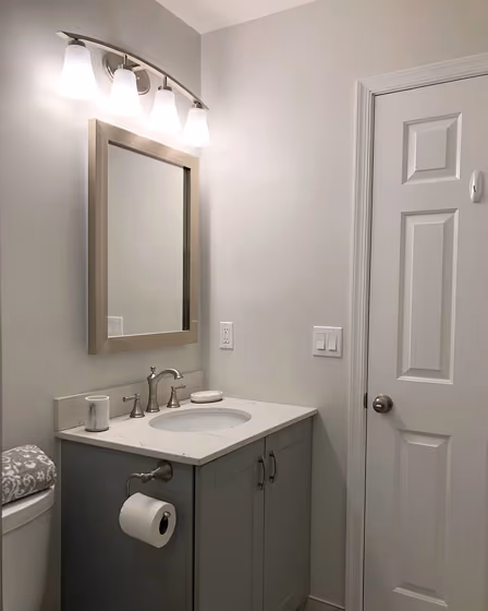 Act like a pro: When choosing paint with an LRV of 74.08%, pay attention to your bulbs' brightness. Light brightness is measured in lumens. The lower the paint's LRV, the higher lumen level you need. Every square foot of room needs at least 40 lumens. That means for a 200 ft2 living room you’ll need about 8000 lumens of light – e.g., eight 1000 lm bulbs.