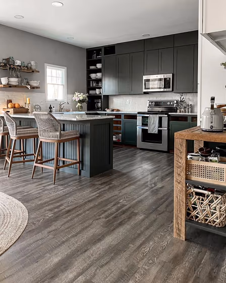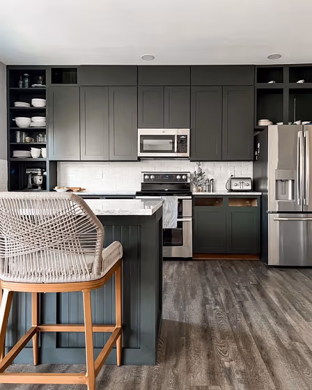Want a stylish kitchen? View real-life photo examples of this fascinating cool hue is paired with backsplashes, countertops, and hardware.