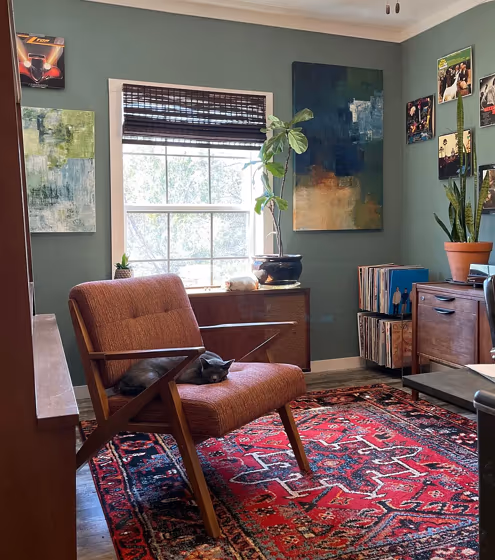 Check out this stunning Dark color used in real living rooms. Explore how this Green shade can create a unique space