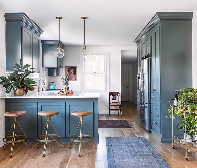 Want a stylish kitchen? View real-life photo examples of this fascinating cool hue is paired with backsplashes, countertops, and hardware.