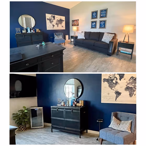 Check out this stunning Dark color used in real living rooms. Explore how this Blue shade can create a unique space