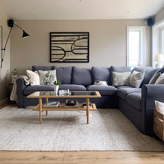 This color scheme is a combination of two shades that are opposite each other on the color wheel. The high contrast between these colors creates a vibrant and dynamic visual effect. For the color Sand with a orange hue, complementary colors are those with a blue hue close to 218, such as Jotun Gustavian Blue and Classic Blue.