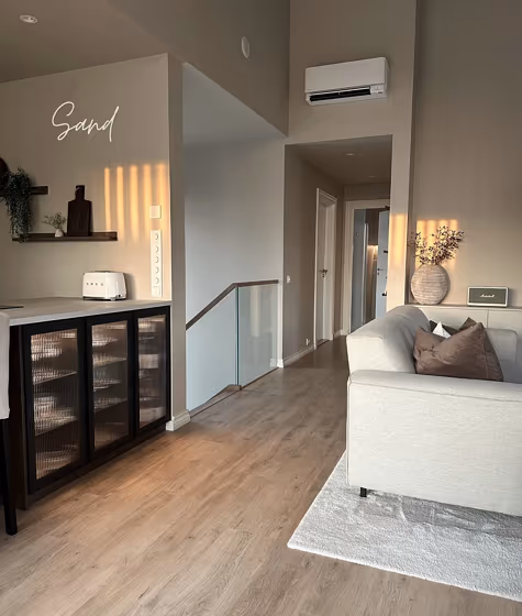 - Warm beige shades create a cozy and inviting atmosphere, making any room feel comfortable and welcoming, perfect for living rooms, bedrooms, and hallways.