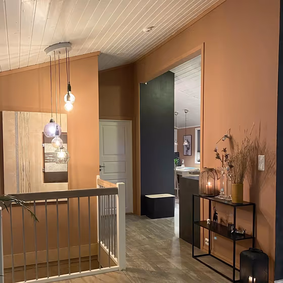 View the photos of real spaces painted with this that were not included in specific categories.Close-ups, painted furniture, storages and dressers, hallways, stairs and ceilings.