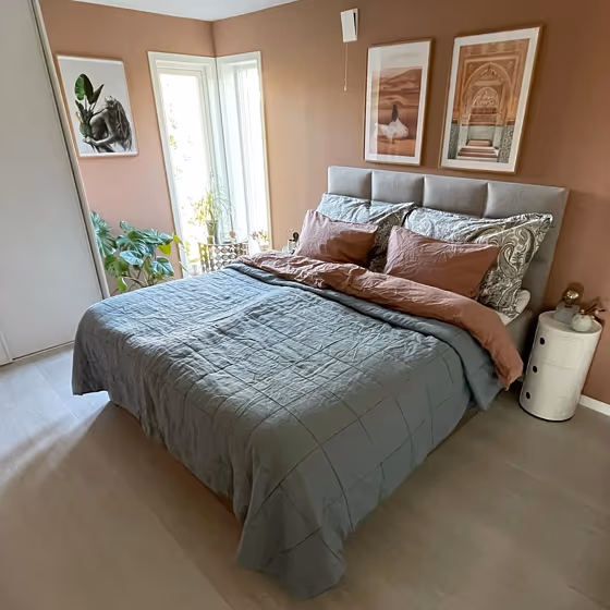 We’ve hand-picked a beautiful collection of photos of this amazing Beige shade used in real bedrooms. Take a look and imagine how this wonderful warm Mid-tone paint color could transform your own bedroom space.