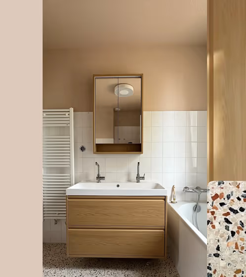 This color scheme is a combination of two shades that are opposite each other on the color wheel. The high contrast between these colors creates a vibrant and dynamic visual effect. For the color Scallop with a red hue, complementary colors are those with a green hue close to 207, such as Farrow and Ball Selvedge and Wine Dark.
