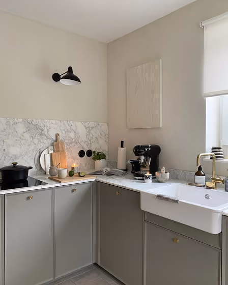 Farrow and Ball 291 on kitchen cabinets (4 photos)