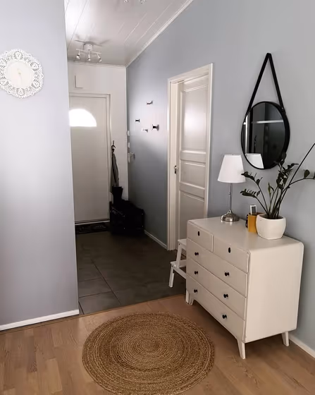 Tikkurila X438 Secret is a muted and sophisticated hue that adds an air of tranquility to any space. This soft, understated tone pairs beautifully with deep navy blue for a timeless look, while also complementing blush pink for a touch of warmth. Oxygen White acts as the perfect contrast to X438 Secret, creating a fresh and modern color palette. When styled with natural wood accents, this color combination brings a sense of harmony and balance to a room.