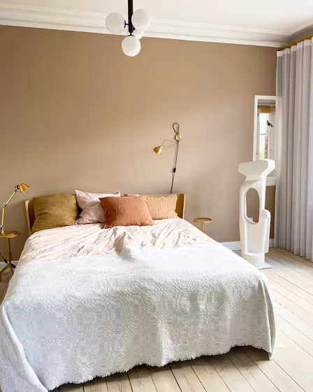We’ve hand-picked a beautiful collection of photos of this amazing Beige shade used in real bedrooms. Take a look and imagine how this wonderful warm Mid-tone paint color could transform your own bedroom space.