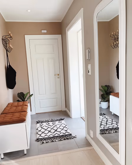 - Warm beige shades create a cozy and inviting atmosphere, making any room feel comfortable and welcoming, perfect for living rooms, bedrooms, and hallways.
