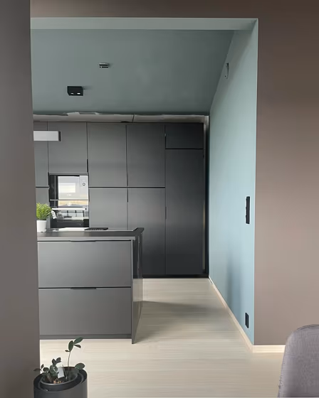 This color scheme is a combination of two shades that are opposite each other on the color wheel. The high contrast between these colors creates a vibrant and dynamic visual effect. For the color Serene Blue with a green hue, complementary colors are those with a red hue close to 0, such as Jotun Deep Soil and Daydream.