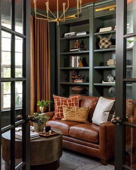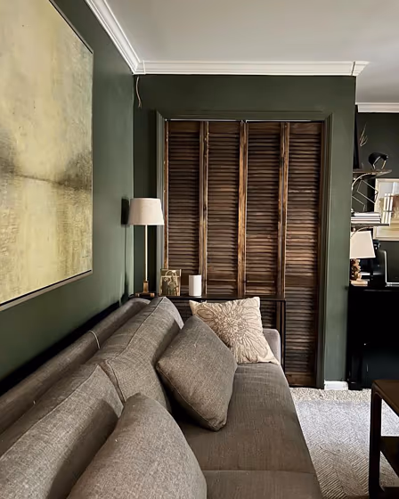 Check out this stunning Dark color used in real living rooms. Explore how this Green shade can create a unique space