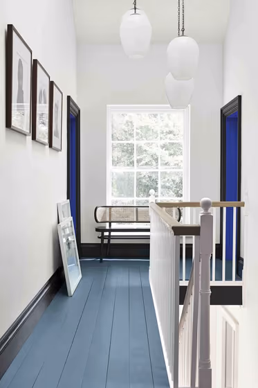 This color scheme is a combination of two shades that are opposite each other on the color wheel. The high contrast between these colors creates a vibrant and dynamic visual effect. For the color Shallows with a orange hue, complementary colors are those with a blue hue close to 240, such as Little Greene Juniper Ash and Mambo.
