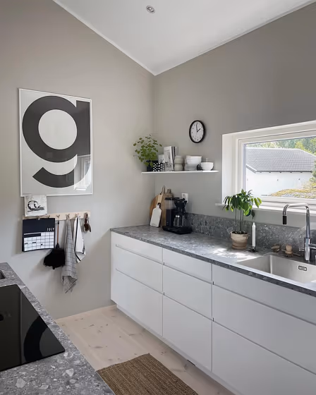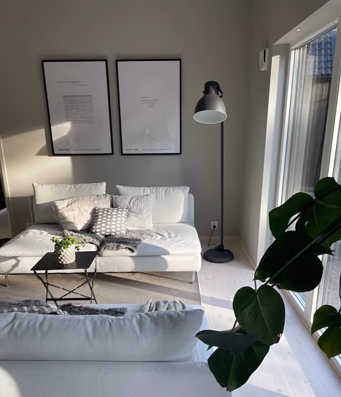 This color scheme is a combination of two shades that are opposite each other on the color wheel. The high contrast between these colors creates a vibrant and dynamic visual effect. For the color Sheer Grey with a orange hue, complementary colors are those with a blue hue close to 220, such as Jotun Gustavian Blue and Classic Blue.