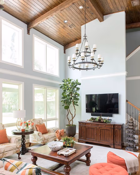 Check out this stunning Mid-tone color used in real living rooms. Explore how this Green shade can create a unique space