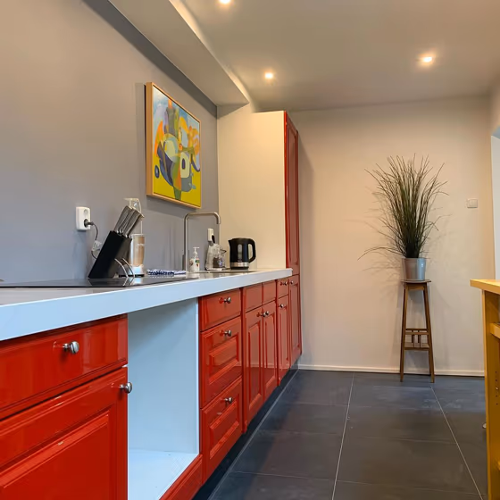 RAL Classic RAL 3001 on kitchen cabinets (2 photos)