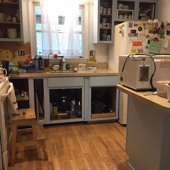 Sherwin Williams SW 9145 on kitchen cabinets (2 photos)