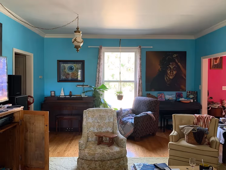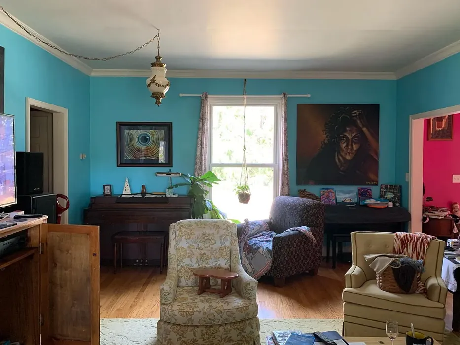 Check out this stunning Mid-tone color used in real living rooms. Explore how this Blue shade can create a unique space