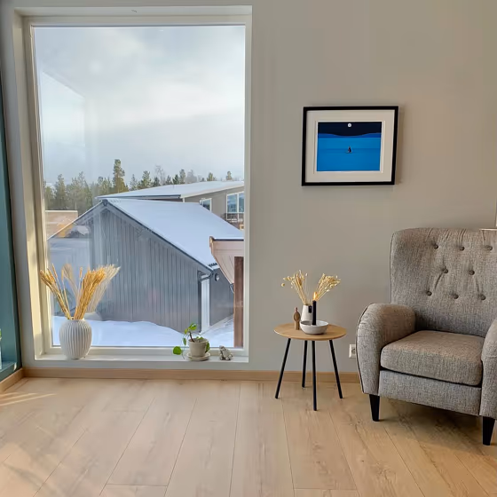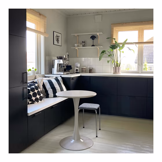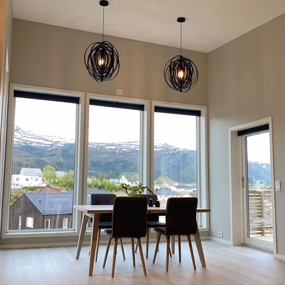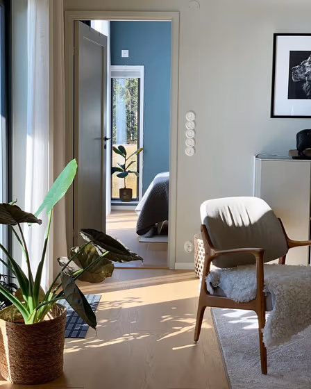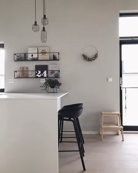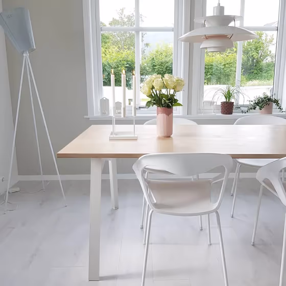 This color scheme is a combination of two shades that are opposite each other on the color wheel. The high contrast between these colors creates a vibrant and dynamic visual effect. For the color Smooth White with a orange hue, complementary colors are those with a blue hue close to 227, such as Jotun Classic Blue and Heath Violet.