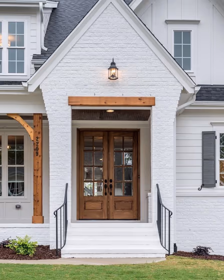 Looking for a fresh new look for your house exterior or starting from skretch? We’ve collected pictures of real-life homes that have been painted with this warm hue. Find inspiration for your house’s exterior, front doors, gates, shutters, frames or windows.