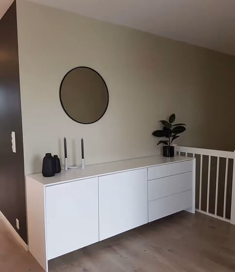 View the photos of real spaces painted with this that were not included in specific categories.Close-ups, painted furniture, storages and dressers, hallways, stairs and ceilings.