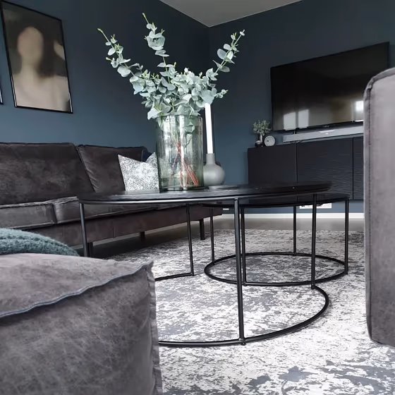 Check out this stunning Dark color used in real living rooms. Explore how this Blue shade can create a unique space