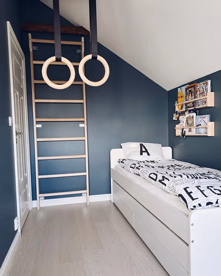 This color scheme is a combination of two shades that are opposite each other on the color wheel. The high contrast between these colors creates a vibrant and dynamic visual effect. For the color St. Pauls Blue with a green hue, complementary colors are those with a red hue close to 13, such as Jotun Deep Soil and Daydream.