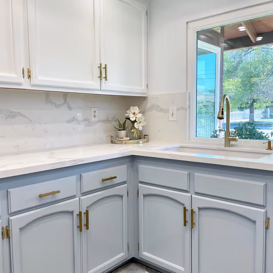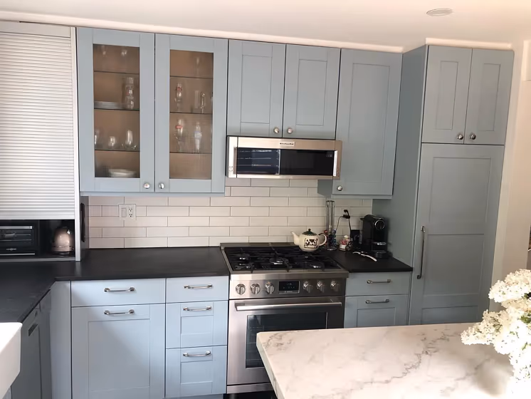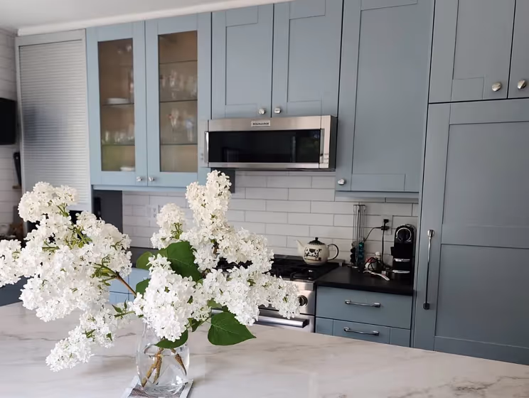 Want a stylish kitchen? View real-life photo examples of this fascinating cool hue is paired with backsplashes, countertops, and hardware.