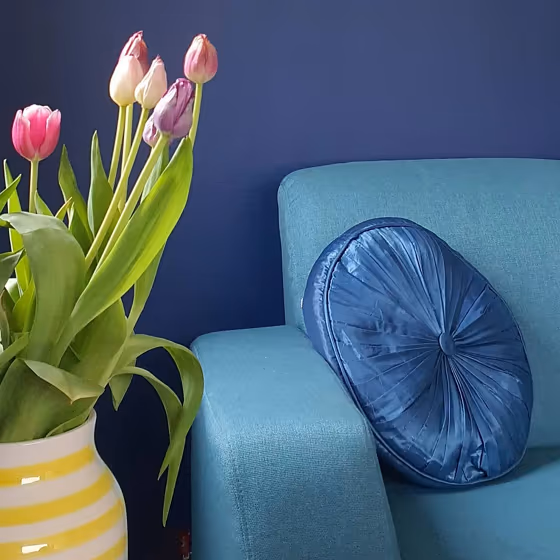 Act like a pro: Mixing warm and cool shades is a must have to get harmonius interior. Add accents that contrast with the primary color to create visual balance. If your walls are a warm color, don’t forget to add accent in cold colors (furniture, art, décor). A good practice is too use a complementary color scheme.