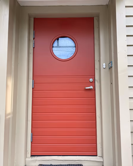 Looking for a fresh new look for your house exterior or starting from skretch? We’ve collected pictures of real-life homes that have been painted with this warm hue. Find inspiration for your house’s exterior, front doors, gates, shutters, frames or windows.