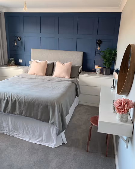 - Cool blue shades make a room feel sleek, fresh, and modern, perfect for bedrooms, bathrooms, and home offices where a sense of calm and sophistication is desired.