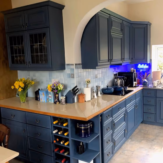 Want a stylish kitchen? View real-life photo examples of this fascinating cool hue is paired with backsplashes, countertops, and hardware.