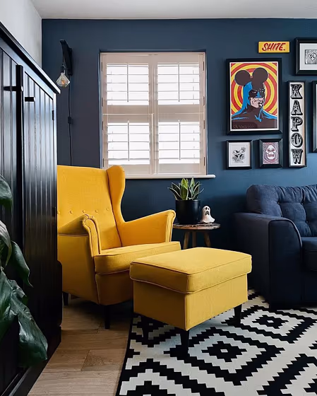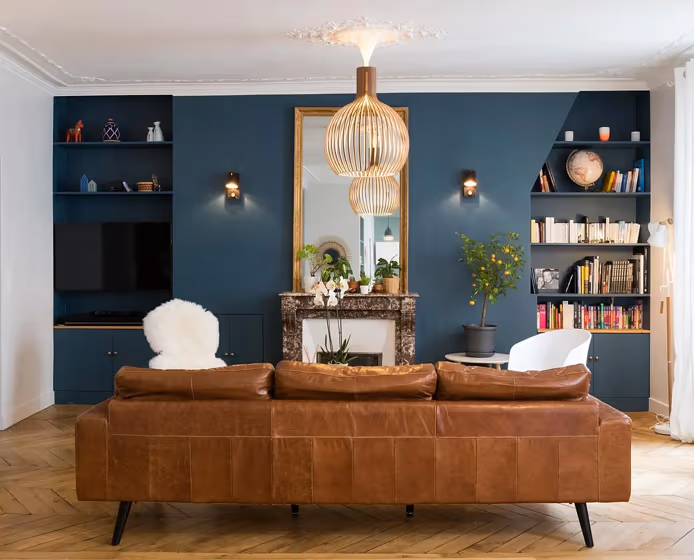 Check out this stunning Dark color used in real living rooms. Explore how this Blue shade can create a unique space