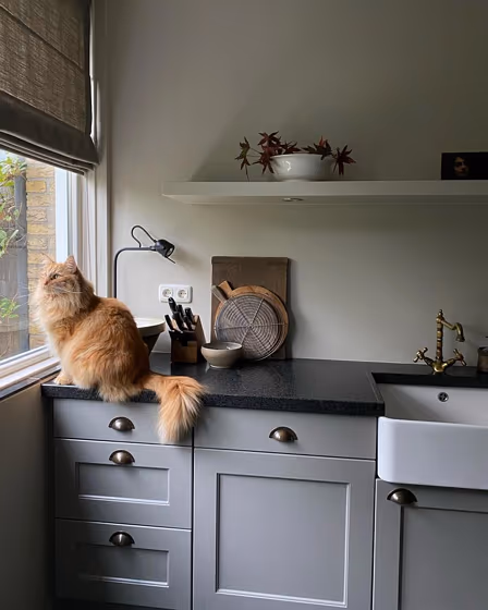 Let’s dive into a full Stone grey paint color review. Take a look at pictures of real interiors and exteriors painted with beautiful RAL 7030. Find out if this gorgeous warm grey paint color would look great on your living room walls or trims, kitchen cabinet, bedroom accent wall, bathroom or house exterior.