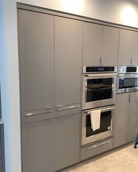 Sherwin Williams SW 7669 on kitchen cabinets (2 photos)