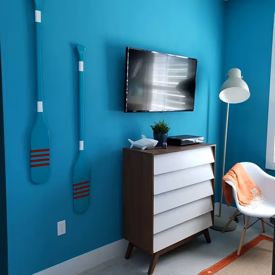 Sherwin Williams SW 6946 Surfer is a serene and versatile shade that evokes a sense of calm and sophistication in any space. This refreshing mid-tone blue-green, Surfer, pairs beautifully with crisp white accents to create a coastal-inspired aesthetic. For a more modern look, consider combining Surfer with soft gray tones or warm sandy neutrals like Sherwin Williams SW 7503 Sticks & Stones. Embrace a beachy vibe by incorporating natural textures such as rattan, jute, or light wood finishes to complement the cool, beachy undertones of Surfer. Infuse a sense of tranquility and balance into your decor with this timeless hue.