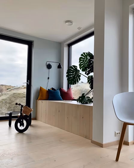 This color scheme is a combination of two shades that are opposite each other on the color wheel. The high contrast between these colors creates a vibrant and dynamic visual effect. For the color Svalbard Sea with a green hue, complementary colors are those with a red hue close to 355, such as Jotun Deep Forest and Pashmina.