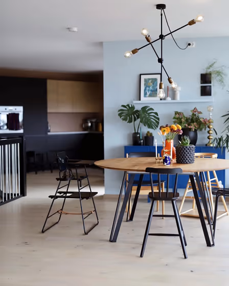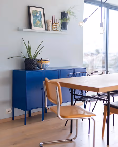Act like a pro: Mixing warm and cool shades is a must have to get harmonius interior. Add accents that contrast with the primary color to create visual balance. If your walls are a warm color, don’t forget to add accent in cold colors (furniture, art, décor). A good practice is too use a complementary color scheme.