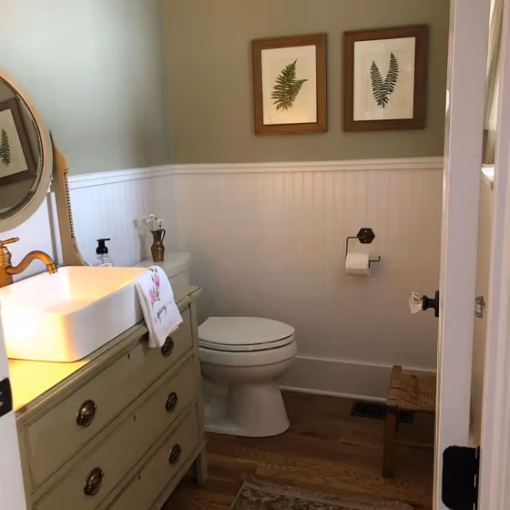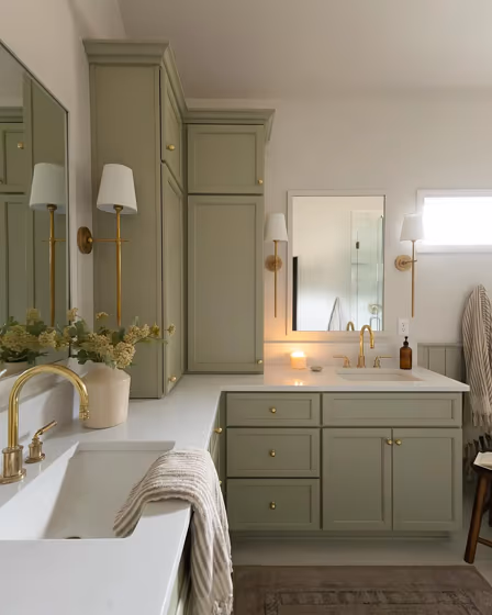 Looking for inspiration for your dream bathroom renovation project? These beautiful handpicked photos will show you this delightfully warm Mid-tone green real bathrooms.
