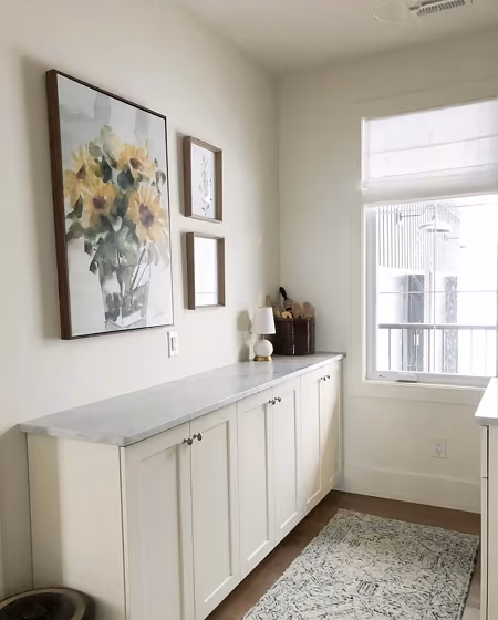Benjamin Moore OC-45 on kitchen cabinets (16 photos)